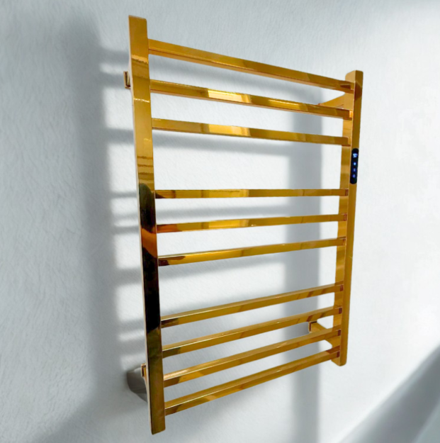 Adicione sofisticação, tecnologia e praticidade ao seu banheiro com o Toalheiro Térmico Dourado Tubo Quadrado com Wi-Fi. Com design moderno e acabamento polido em dourado, este toalheiro é perfeito para quem valoriza elegância e funcionalidade no ambiente.